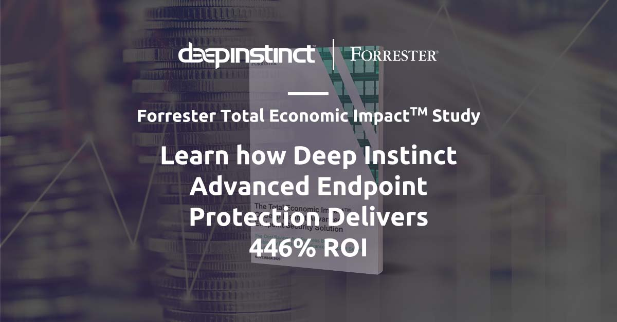 Download The Total Economic Impact™ of Deep Instinct Advanced Endpoint Security Solution. Also, on January 26 there is a webinar scheduled with guest speaker, Forrester senior analyst, Chris Sherman, and Brian Black from Deep Instinct to discuss findings of the TEI study in detail.